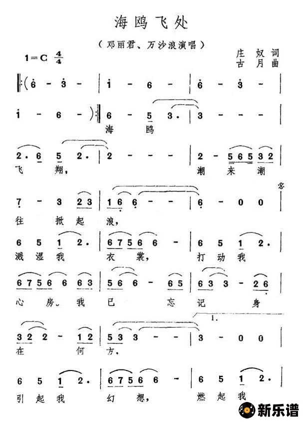 邓丽君/万沙浪演唱的海鸥飞处歌词,海鸥飞处简谱.