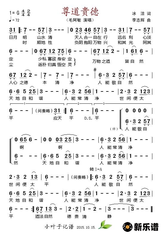 《尊道贵德》简谱 毛阿敏-小叶子制谱