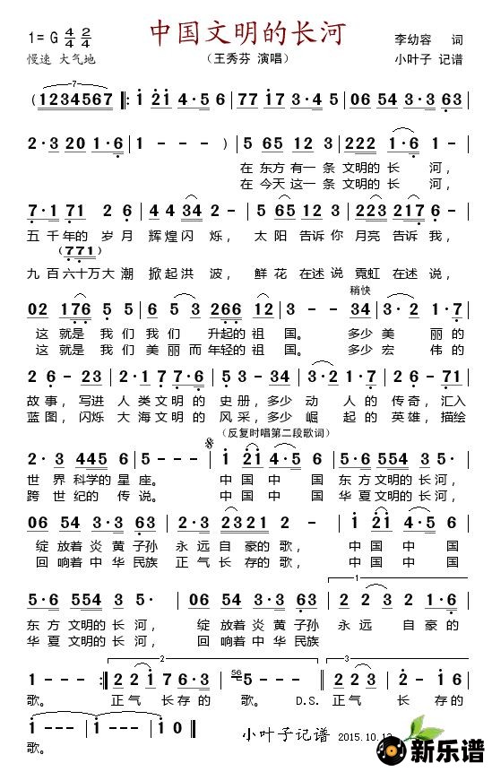 《中国文明的长河》简谱 王秀芬-小叶子制谱