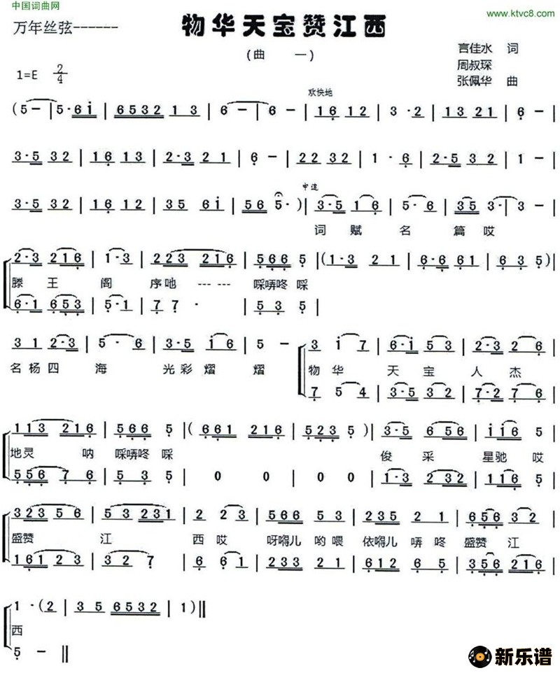 演唱的物华天宝赞江西(万年丝弦)1歌词,物华天宝赞江西(万年丝弦)1简谱.