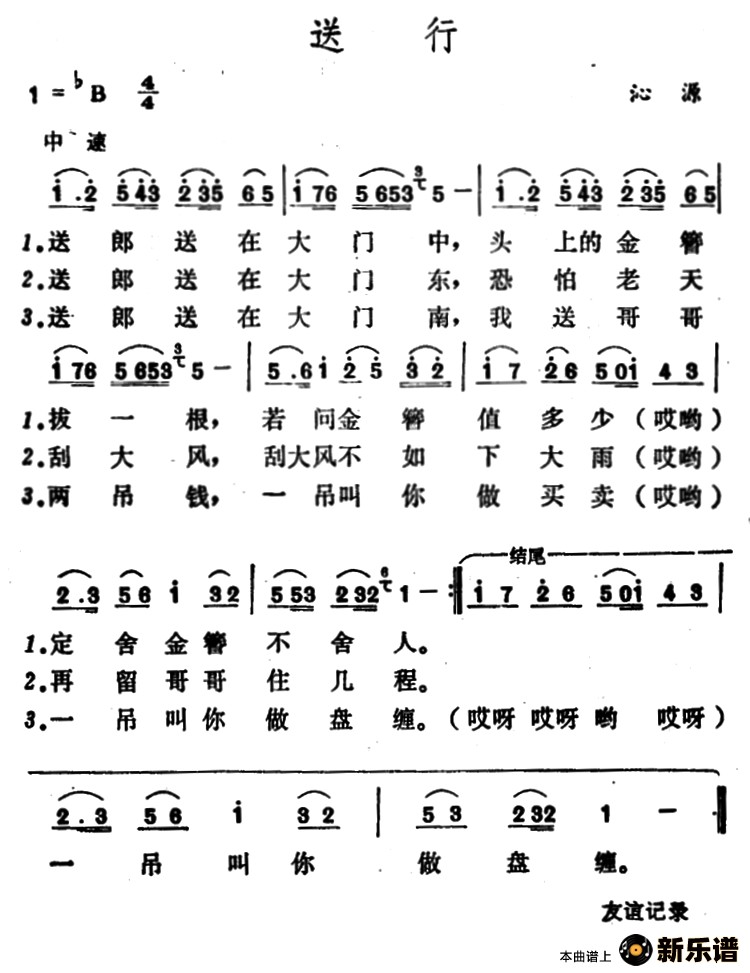 演唱的送行(山西沁源民歌)歌词,送行(山西沁源民歌)简谱.