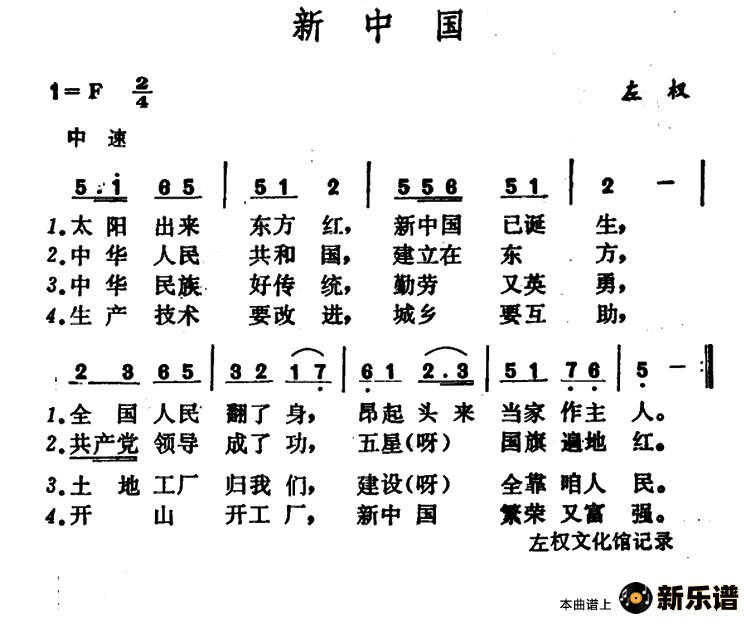 演唱的新中国(山西左权民歌)歌词,新中国(山西左权民歌)简谱.
