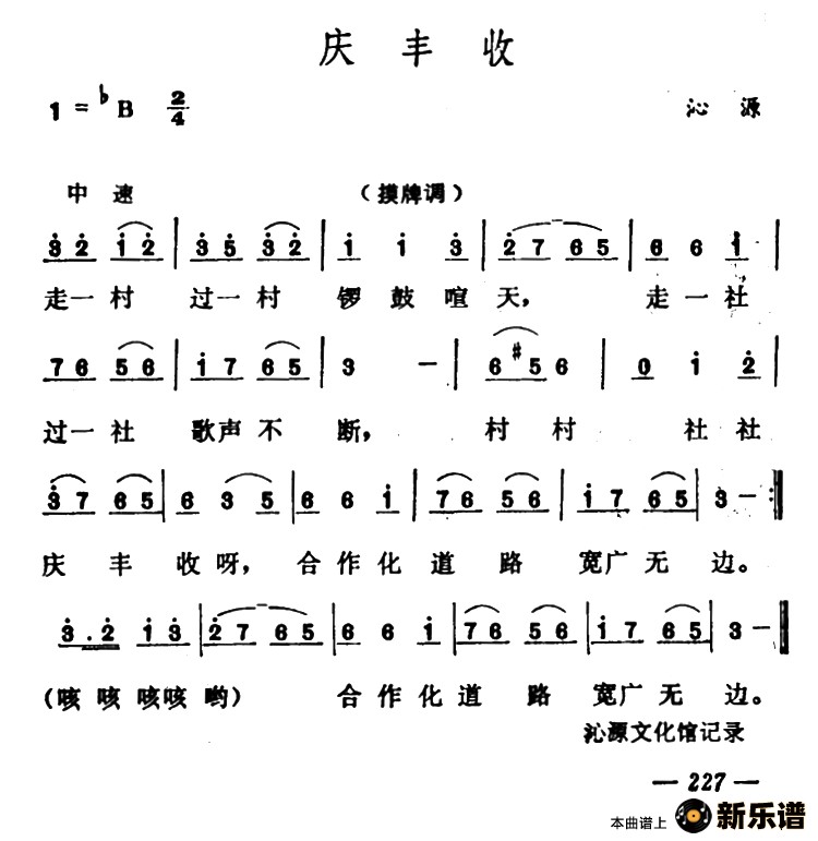 演唱的庆丰收(山西沁源民歌)歌词,庆丰收(山西沁源民歌)简谱.