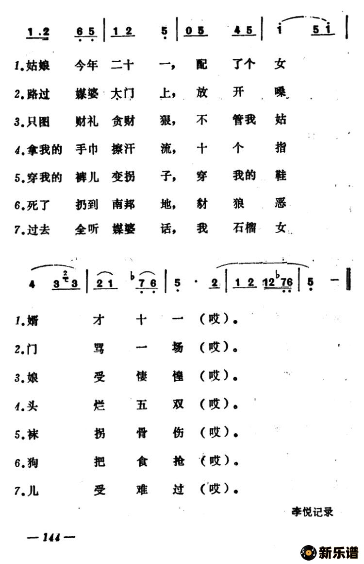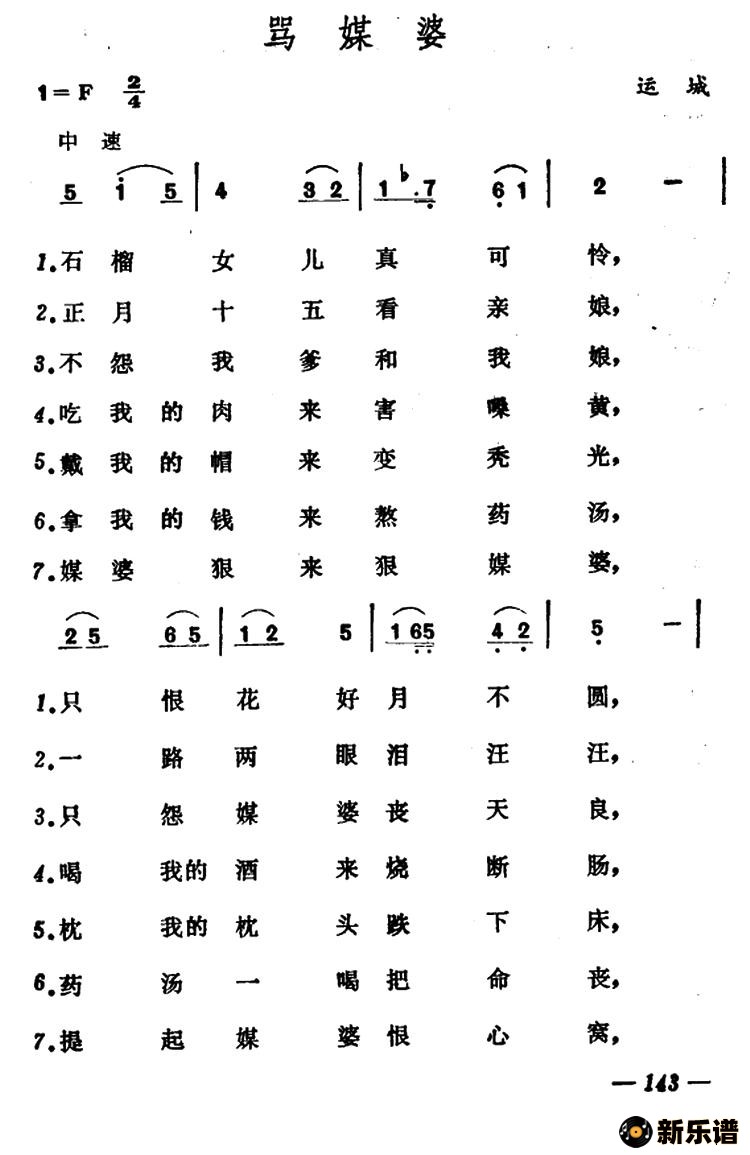 演唱的骂媒婆 (山西运城山歌)歌词,骂媒婆 (山西运城山歌)简谱.