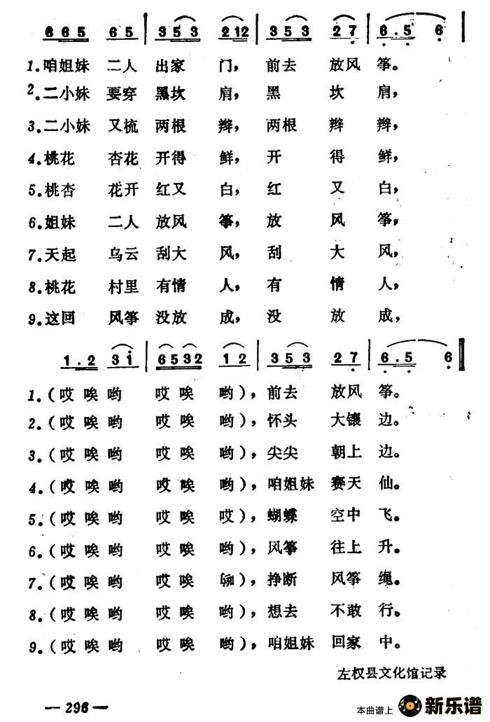 演唱的放风筝(山西左权小花戏)歌词,放风筝(山西左权小花戏)简谱.