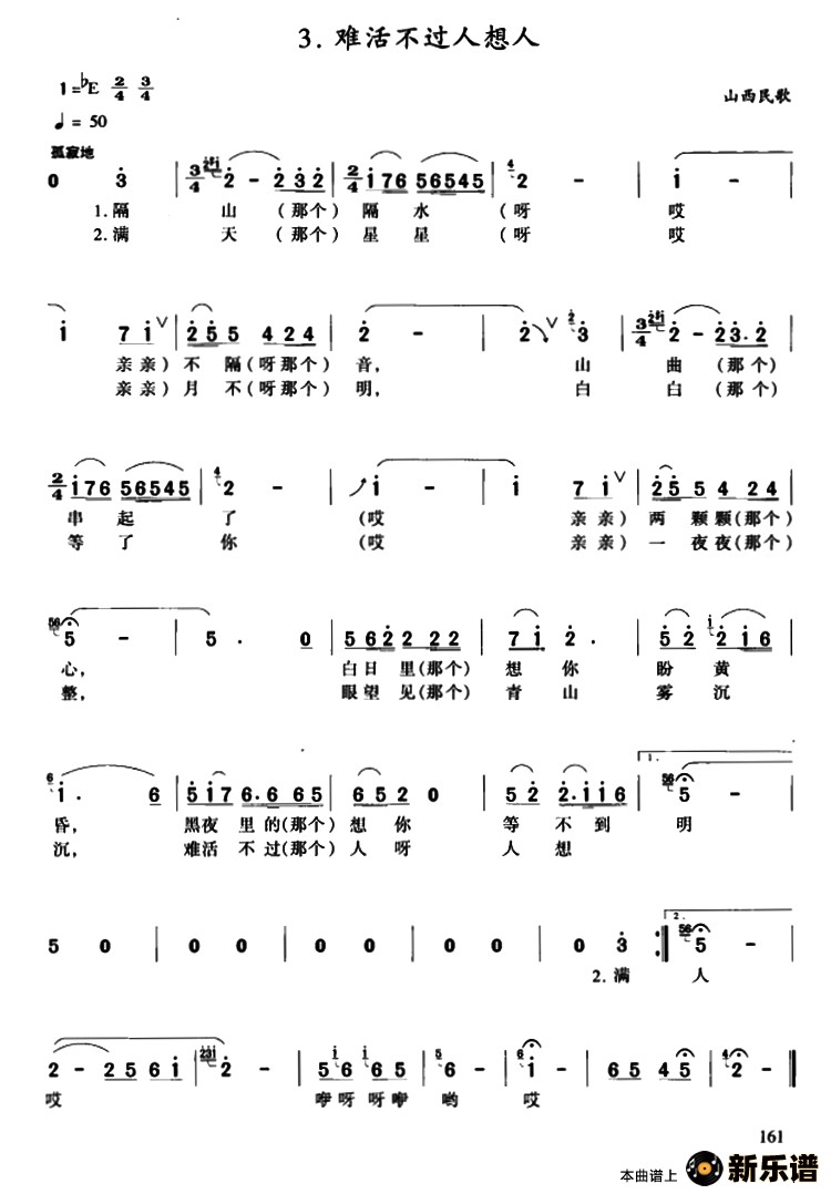 演唱的难活不过人想人(山西民歌)歌词,难活不过人想人(山西民歌)简谱.