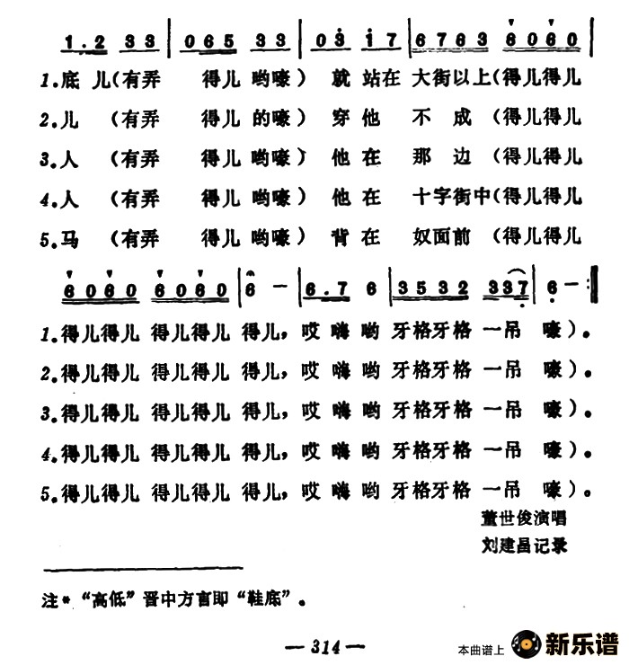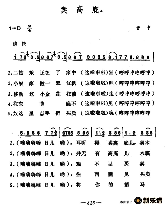 演唱的卖高底(山西晋中秧歌)歌词,卖高底(山西晋中秧歌)简谱.