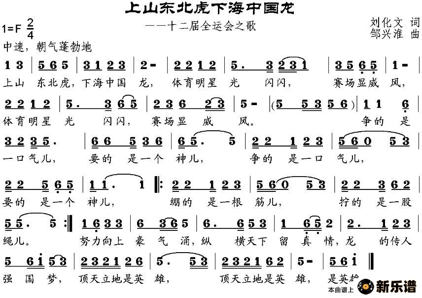 演唱的上山东北虎下海中国龙歌词,上山东北虎下海中国龙简谱.