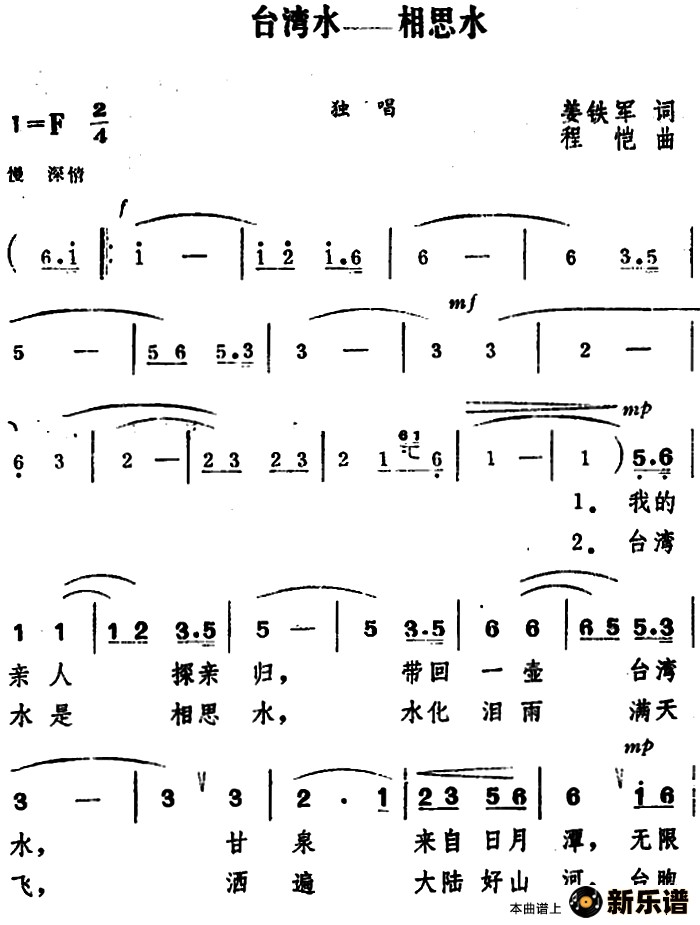 演唱的台湾水——相思水歌词,台湾水——相思水简谱.