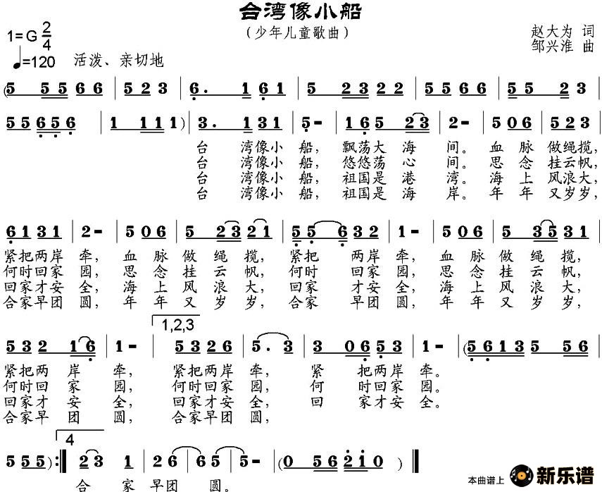 演唱的台湾像小船歌词,台湾像小船简谱.