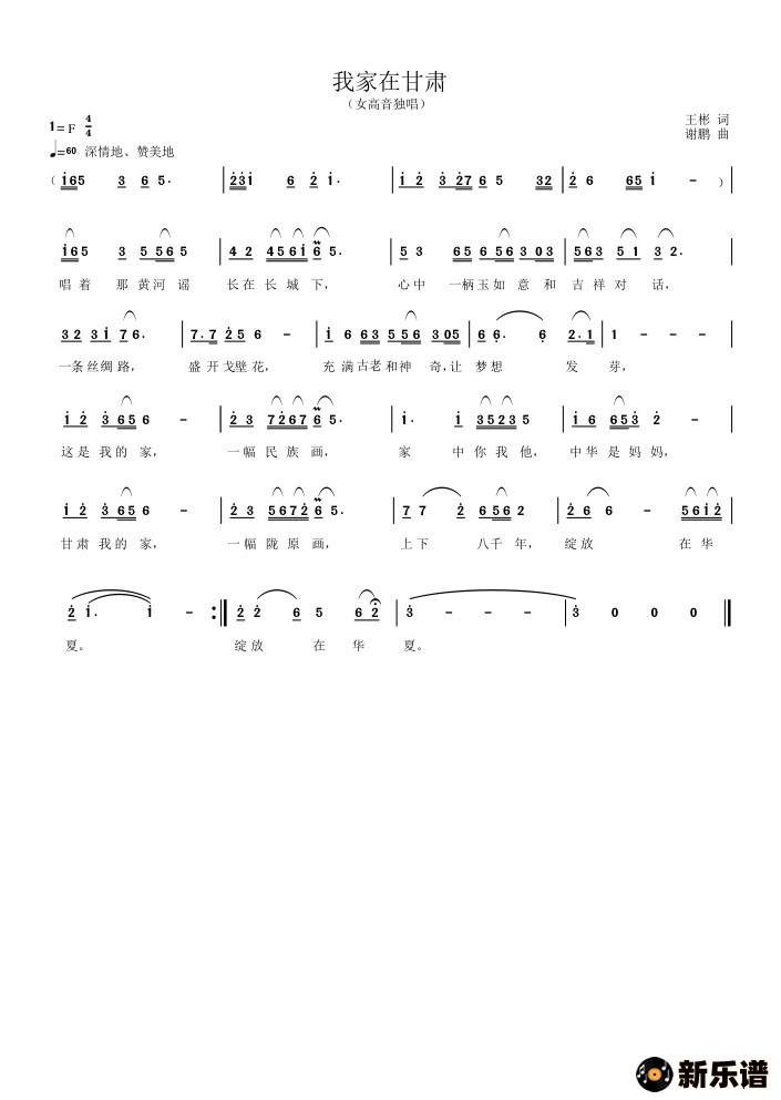 我家在甘肃/作词:王彬 作曲:谢鹏 相关曲谱