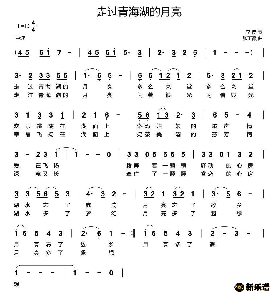 张玉玺演唱的走过青海湖的月亮歌词,走过青海湖的月亮简谱.