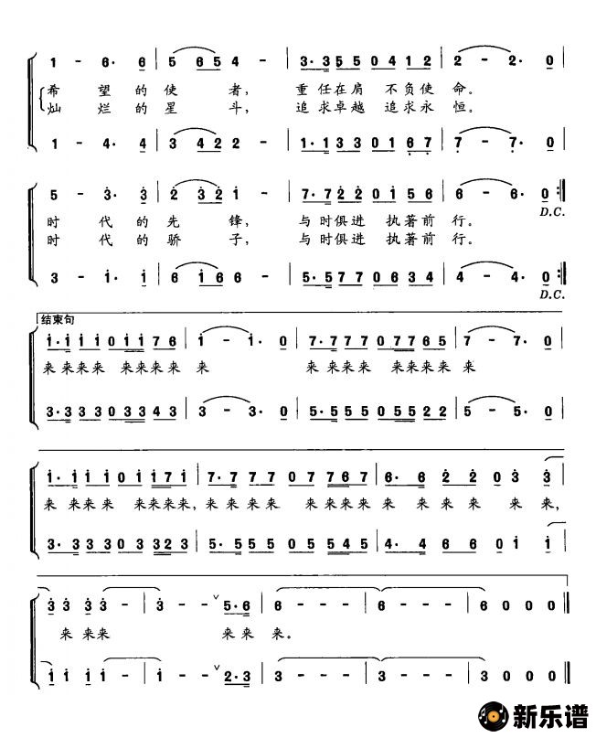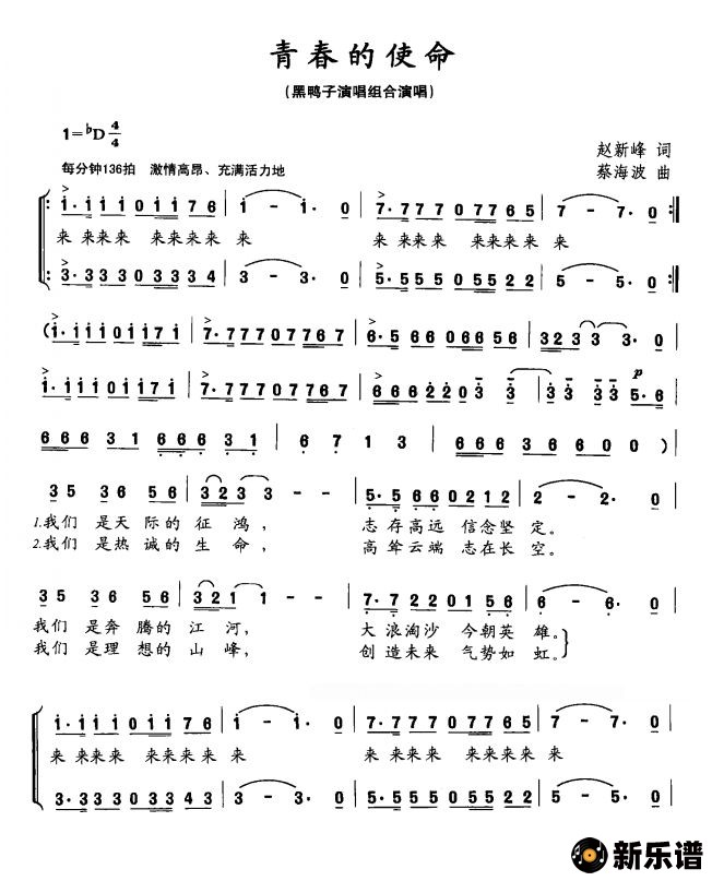 《青春的使命》简谱 黑鸭子-小叶子制谱