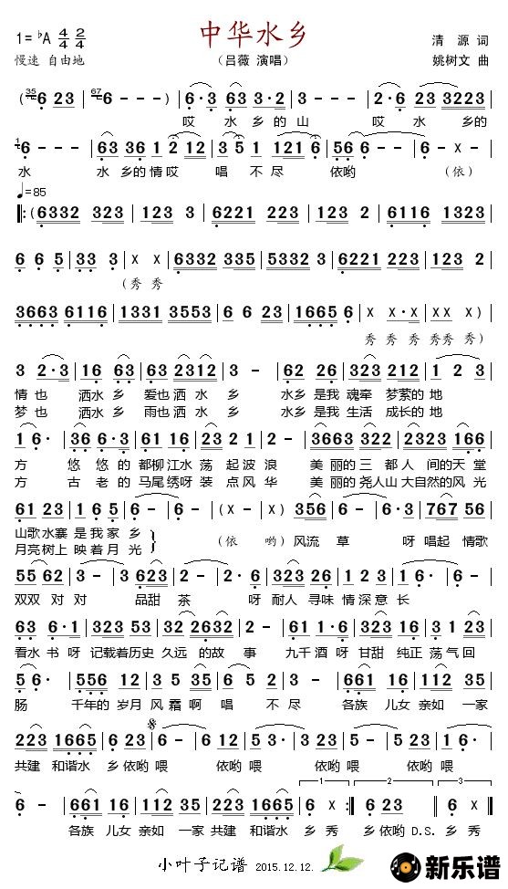 吕薇演唱的中华水乡歌词,中华水乡简谱.