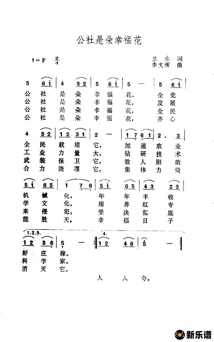 演唱的公社是朵幸福花歌词,公社是朵幸福花简谱.