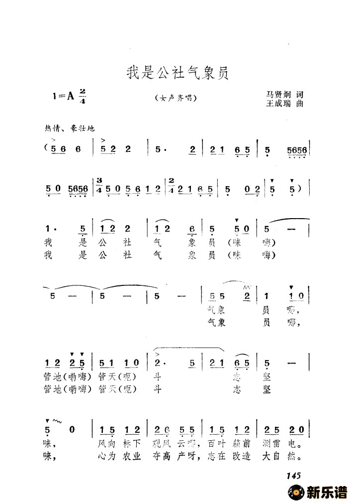 《我是公社气象员》简谱 安徽省文化局歌舞学习班