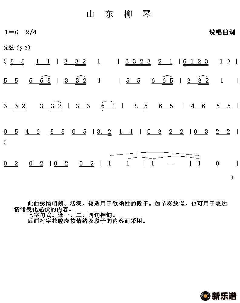 演唱的山东柳琴(说唱曲调)歌词,山东柳琴(说唱曲调)简谱.