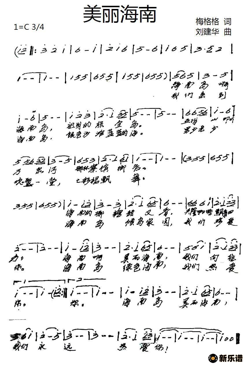 演唱的美丽海南(梅格格词 刘建华曲)歌词,美丽海南(梅格格词 刘建华曲)简谱.