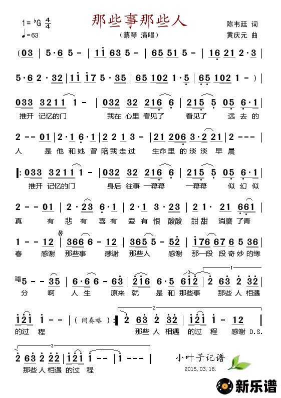 《那些事那些人》简谱 蔡琴-小叶子制谱