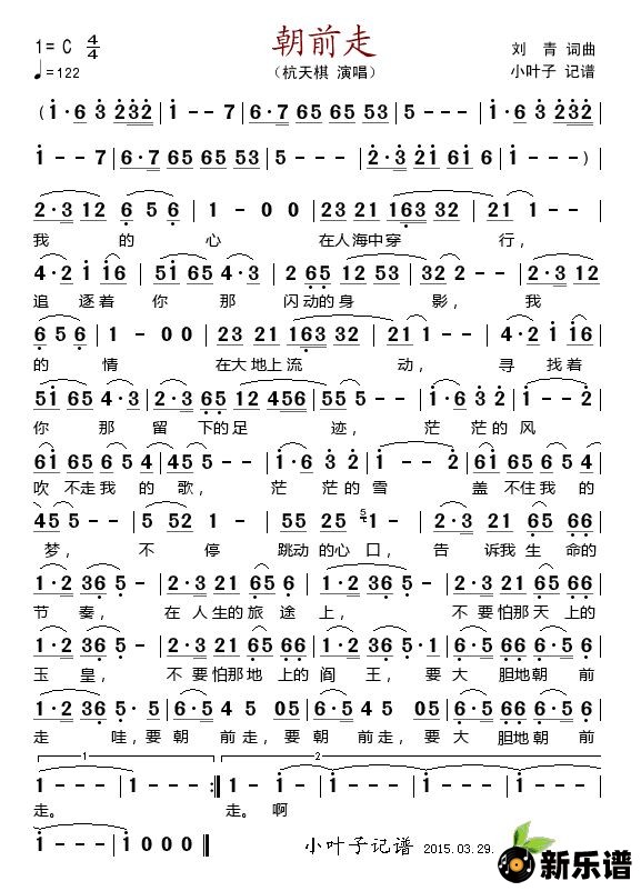 杭天琪演唱的朝前走歌词,朝前走简谱.