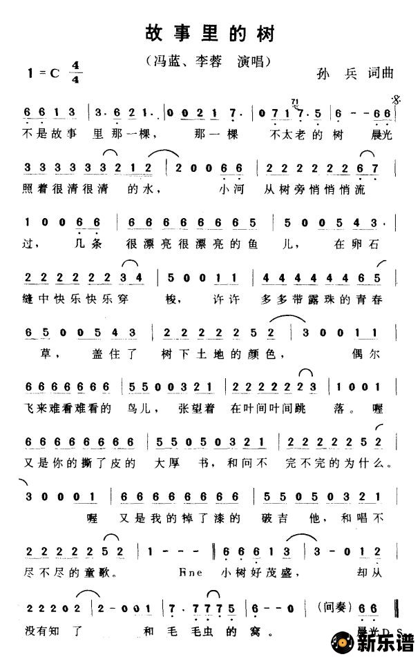 冯蓝/李蓉演唱的故事里的树歌词,故事里的树简谱.