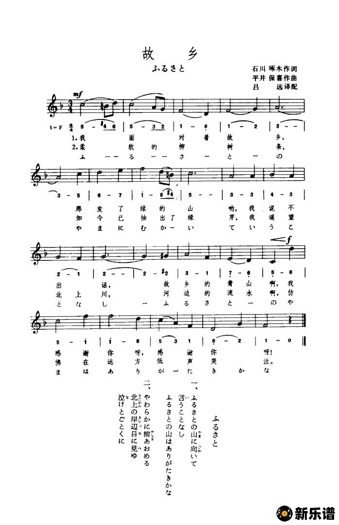 演唱的故乡(日本歌曲)歌词,故乡(日本歌曲)简谱.