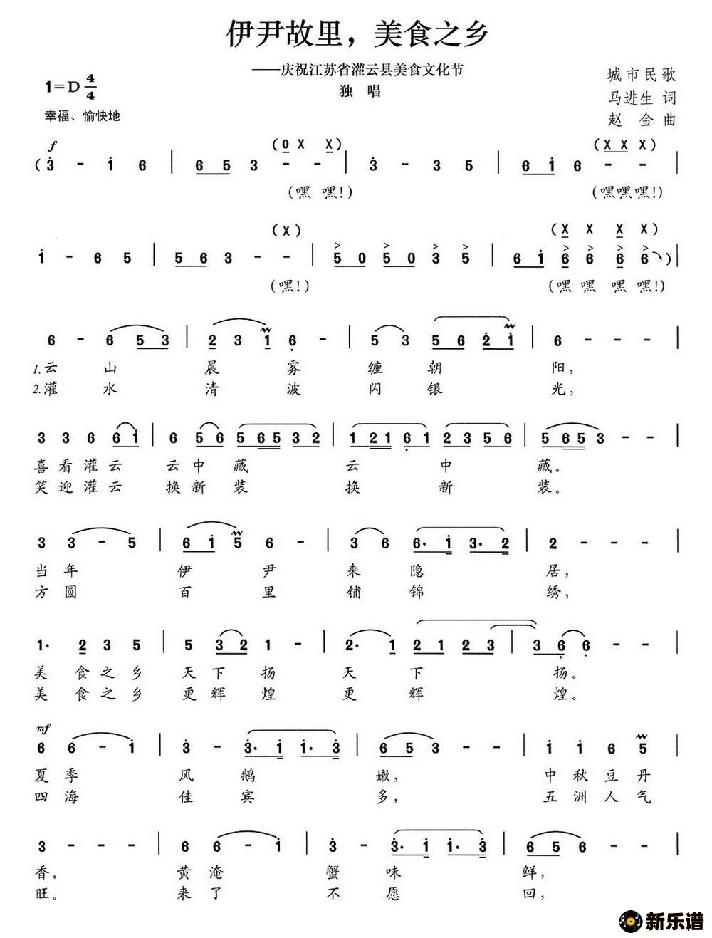 《伊尹故里,美食之乡(庆祝江苏省灌云县美食文化节)》简谱 赵金