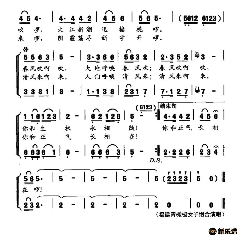 福建青橄榄女子组合演唱的春风·清风歌词,春风·清风简谱.