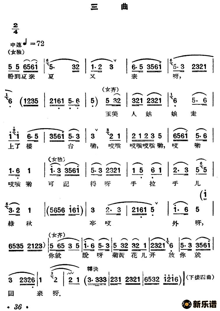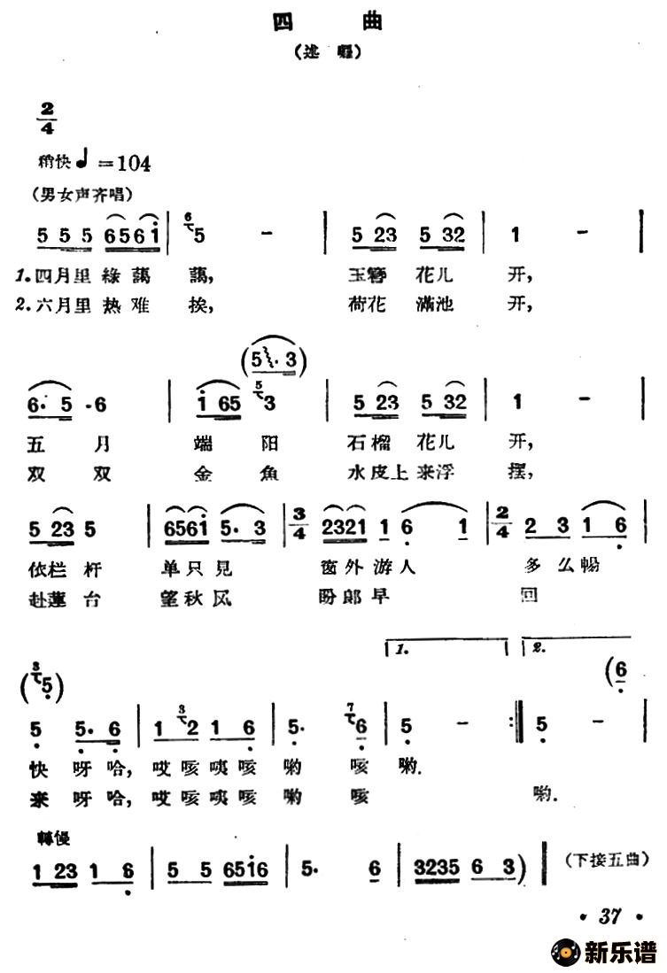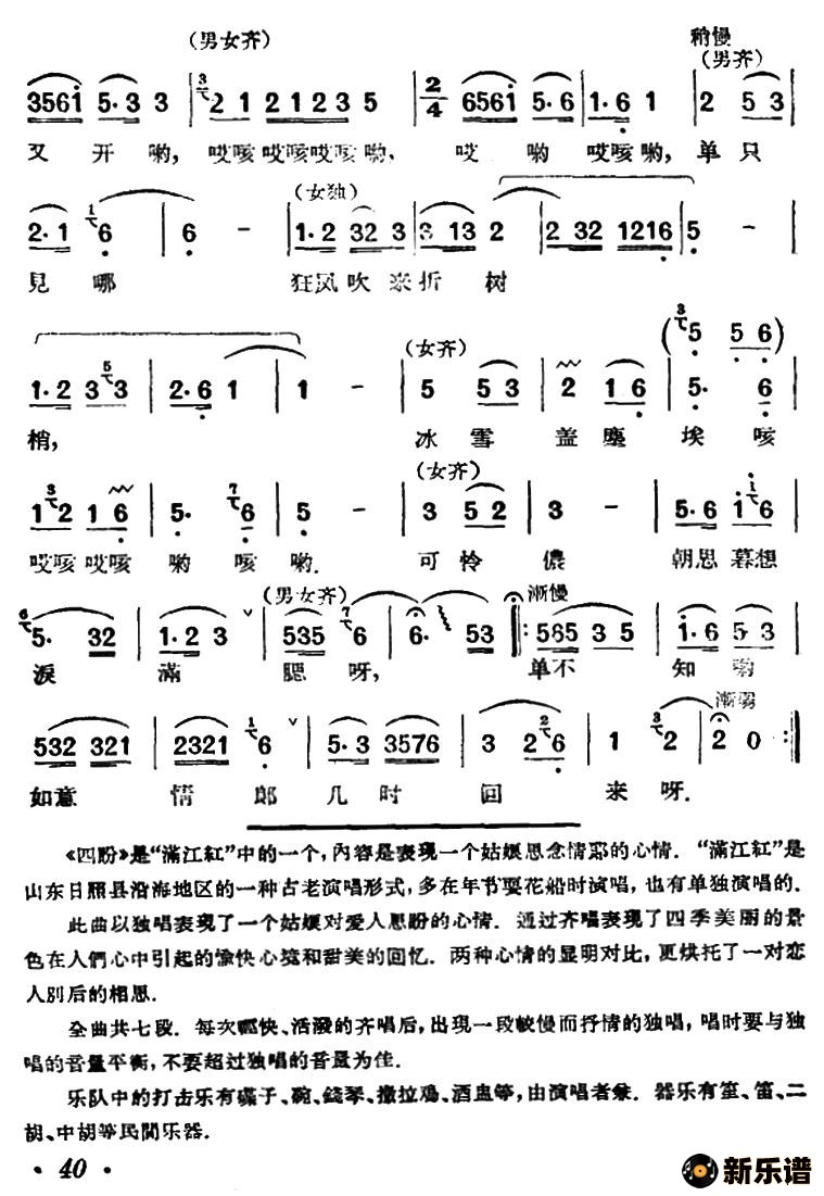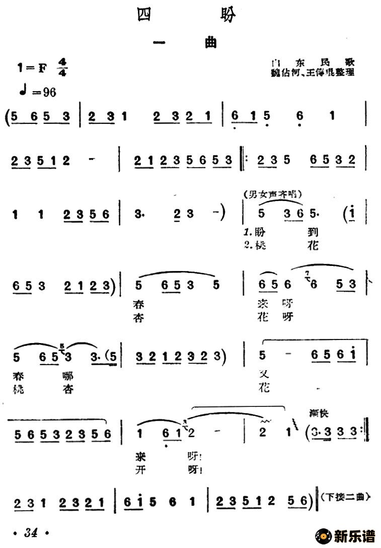 演唱的四盼(山东民歌)歌词,四盼(山东民歌)简谱.