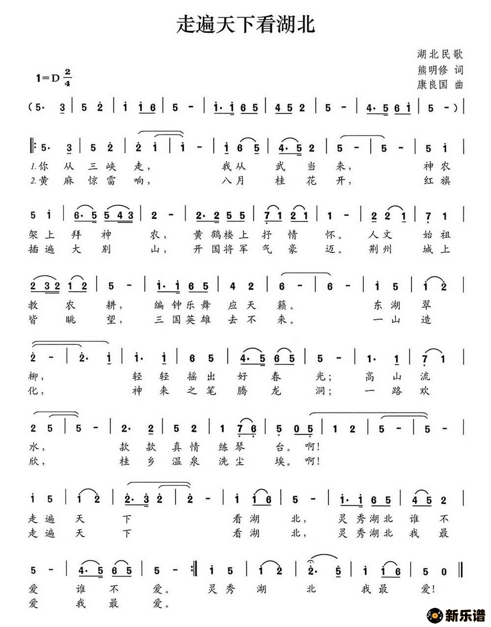 康良国演唱的走遍天下看湖北歌词,走遍天下看湖北简谱.