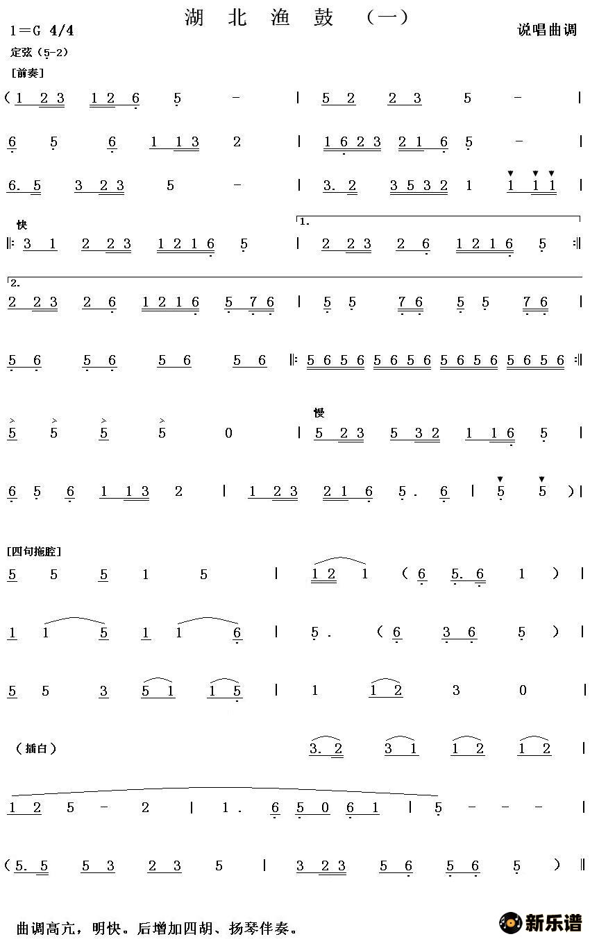 > 湖北渔鼓(一)简谱