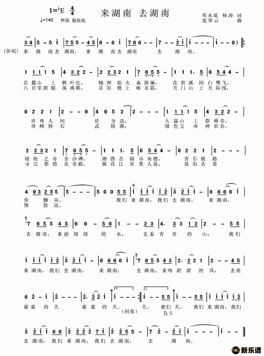 > 来湖南,去湖南(又名:来湖南 去湖南)简谱