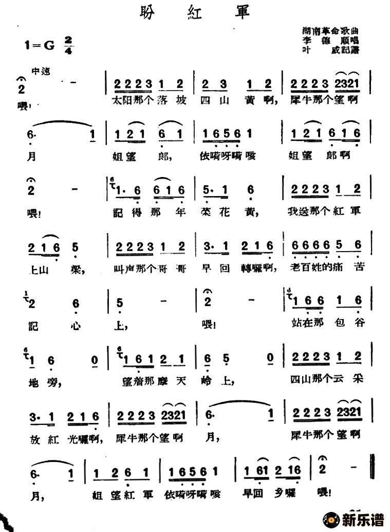 演唱的盼红军(湖南革命歌曲)歌词,盼红军(湖南革命歌曲)简谱.