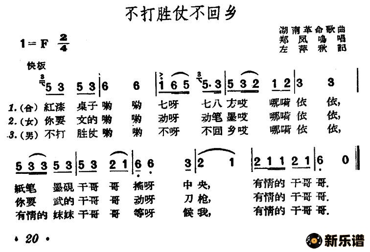 不打胜仗不回乡(湖南革命歌曲 )/ 相关曲谱