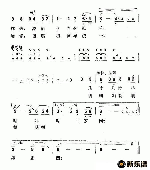 > 夜思(一位漂泊台湾老人的歌)简谱