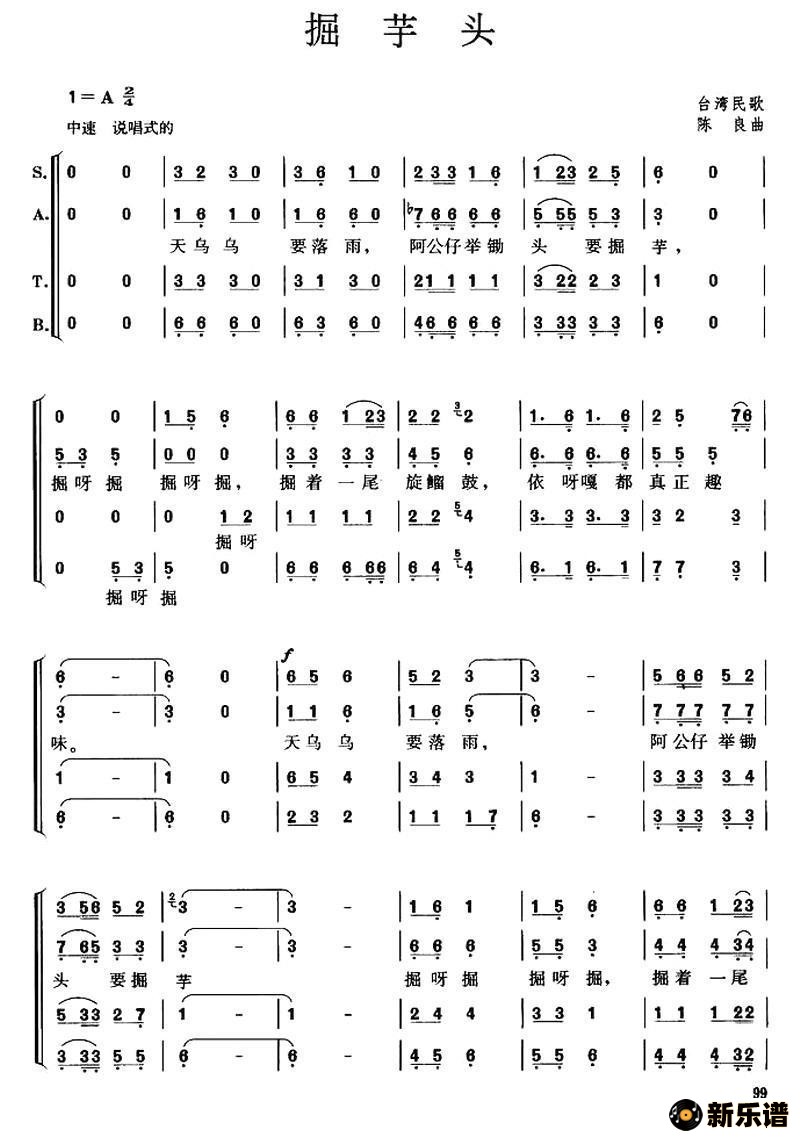 《掘芋头》简谱 台湾民歌、陈良作曲