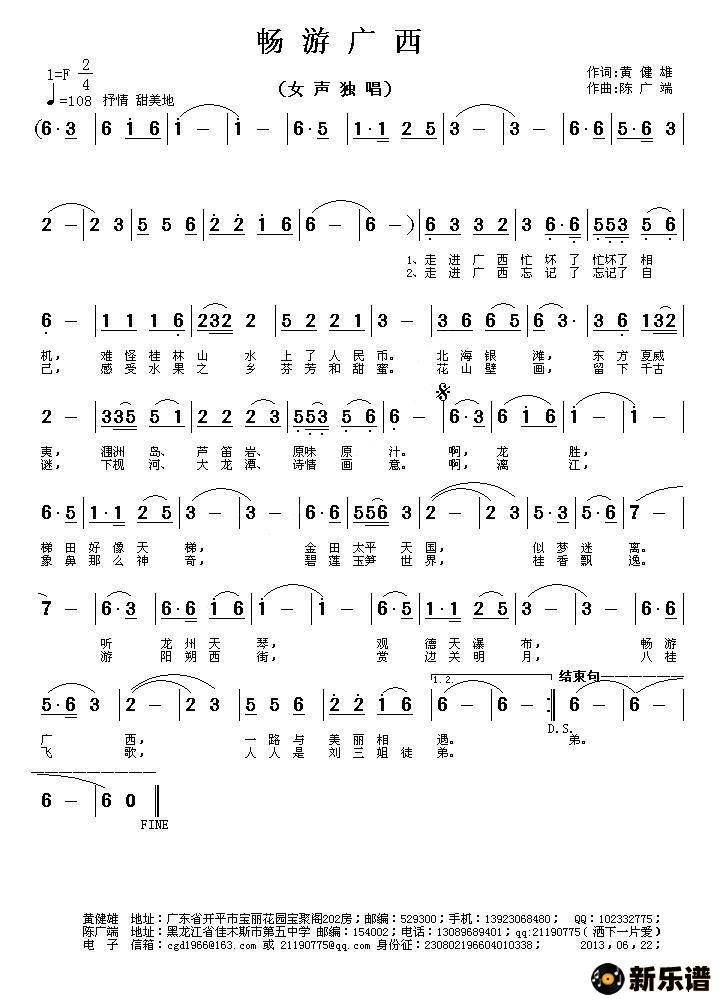 陈广端演唱的畅游广西歌词,畅游广西简谱.