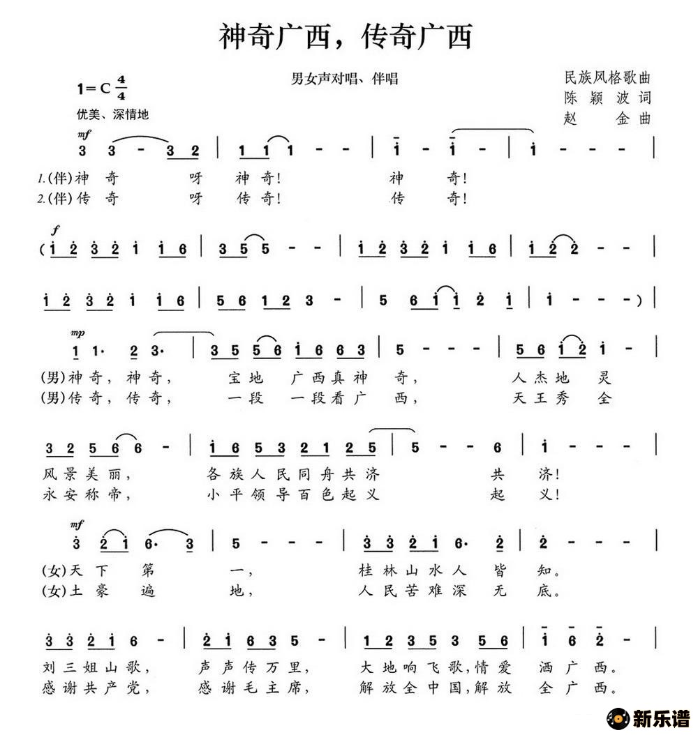 赵金演唱的神奇广西,传奇广西歌词,神奇广西,传奇广西简谱.