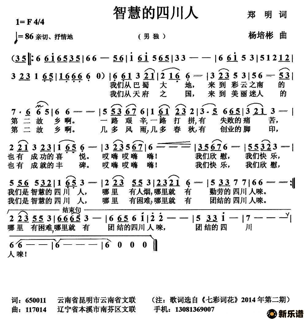 杨培彬演唱的智慧的四川人歌词,智慧的四川人简谱.