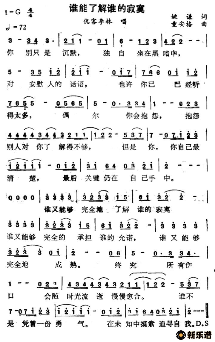 > 谁能了解谁的寂寞简谱