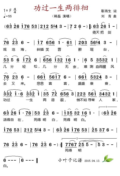 《功过一生两徘徊》简谱 韩磊-小叶子制谱