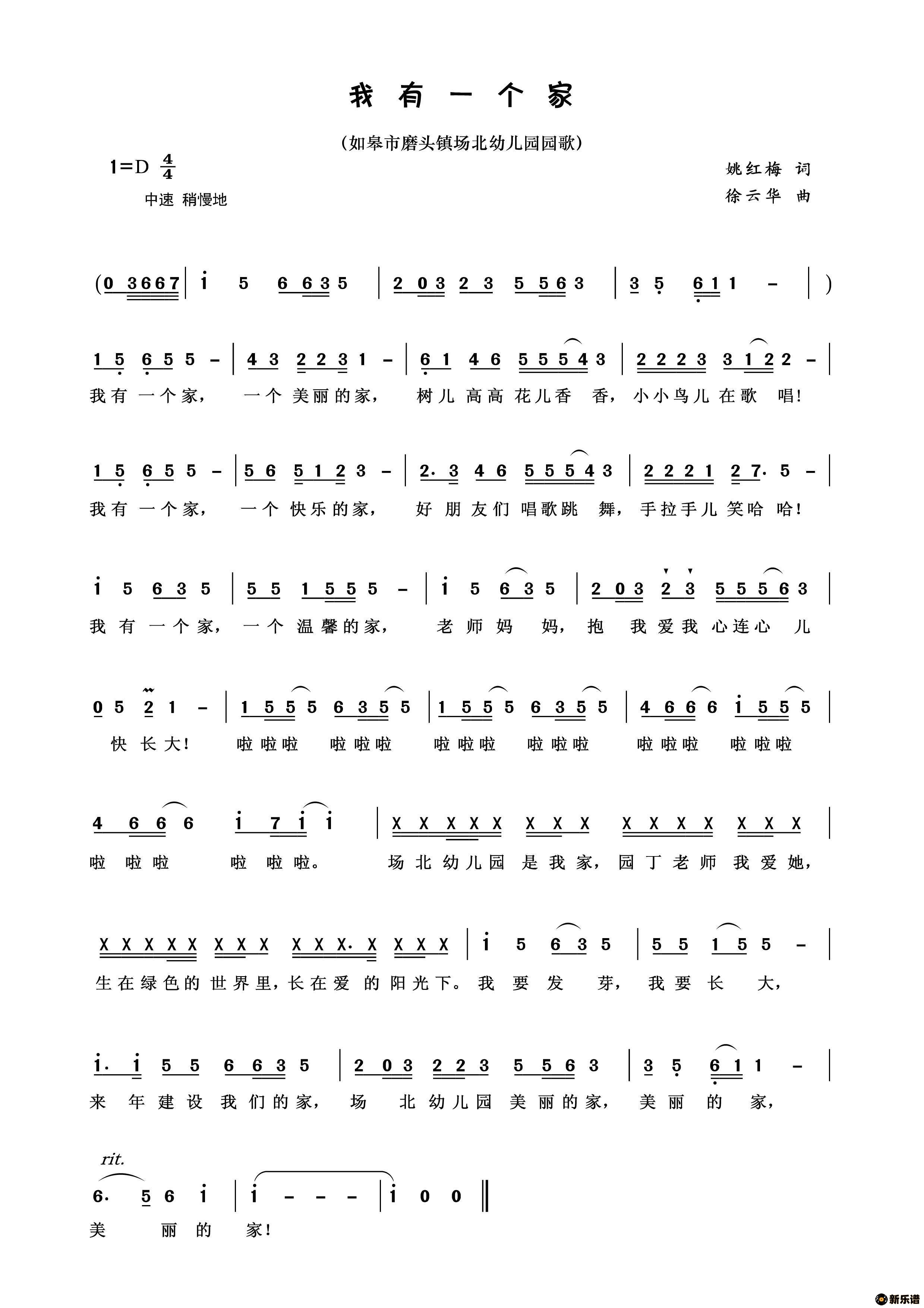 徐云华演唱的我有一个家(江苏如皋场北幼儿园园歌)歌词,我有一个家(江苏如皋场北幼儿园园歌)简谱.