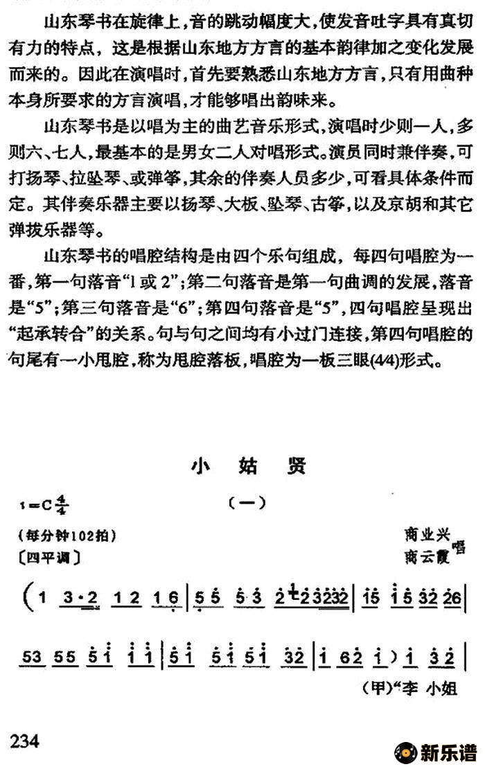 演唱的[山东琴书]小姑贤歌词,[山东琴书]小姑贤简谱.