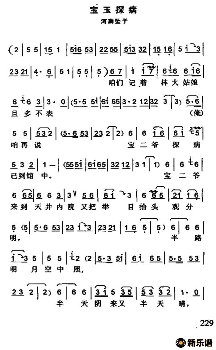 演唱的[河南坠子]宝玉探病歌词,[河南坠子]宝玉探病简谱.
