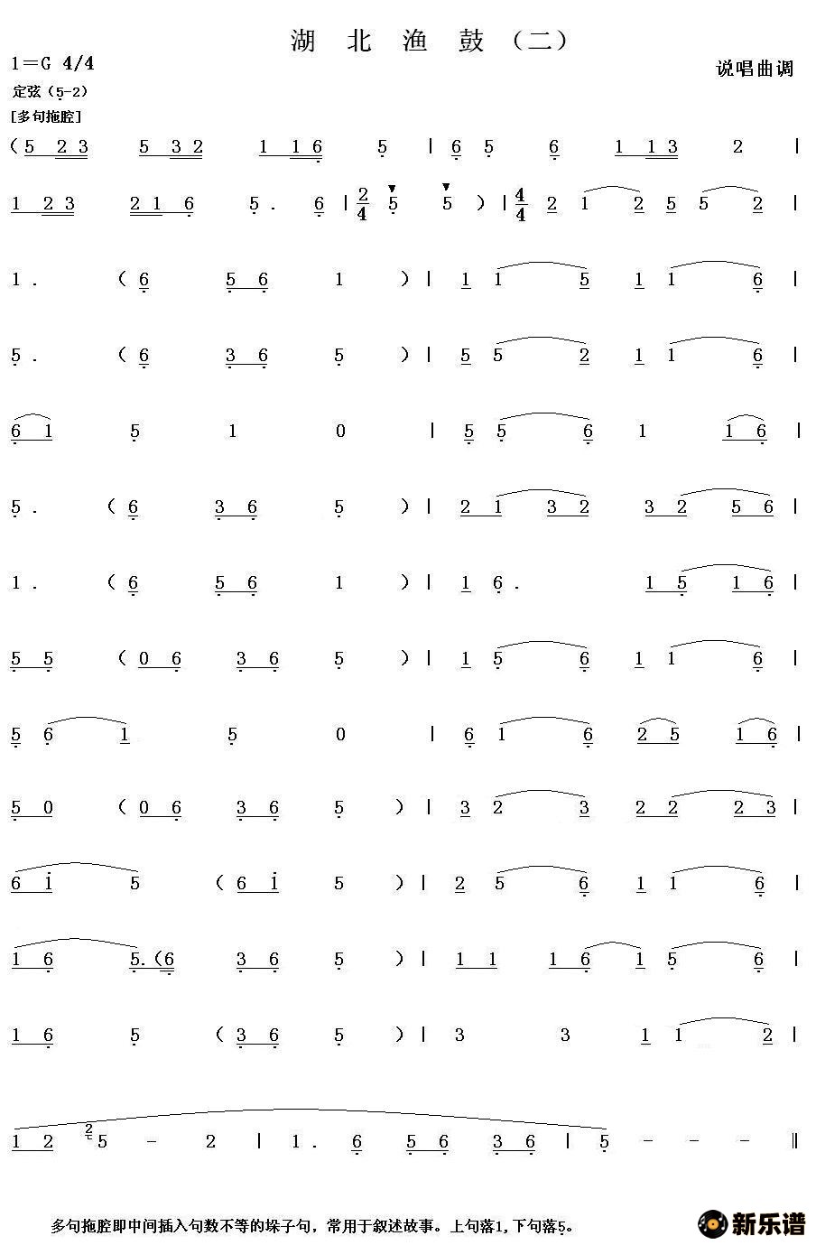 演唱的湖北渔鼓(二)歌词,湖北渔鼓(二)简谱.