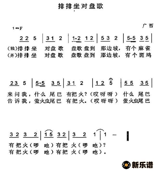 演唱的排排坐对盘歌(广西民歌)歌词,排排坐对盘歌(广西民歌)简谱.