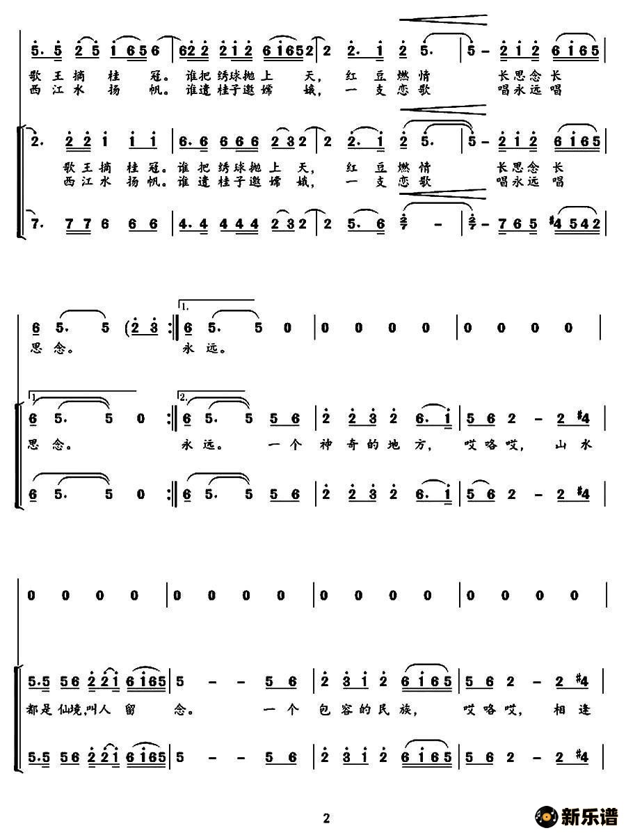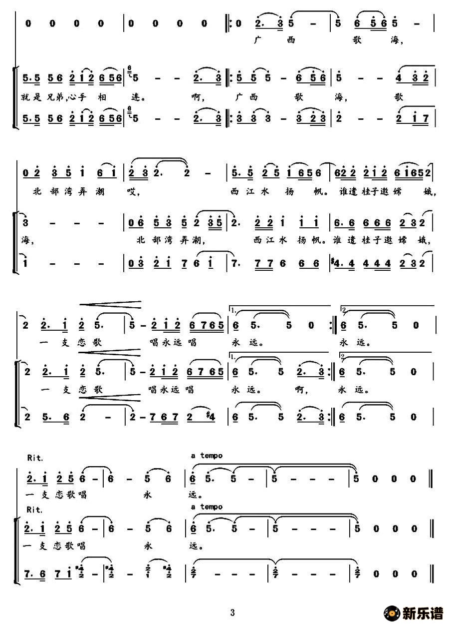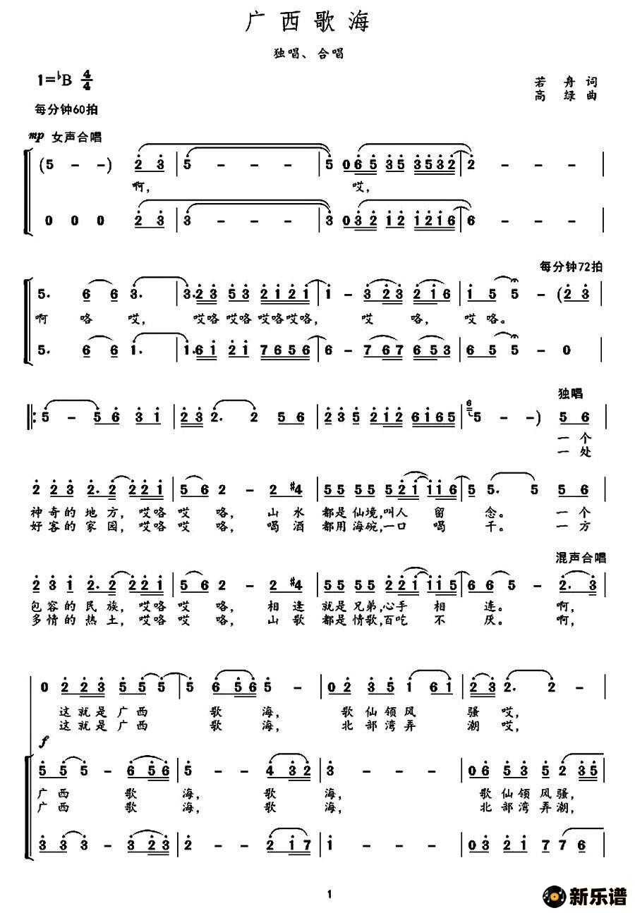 高绿演唱的广西歌海歌词,广西歌海简谱.