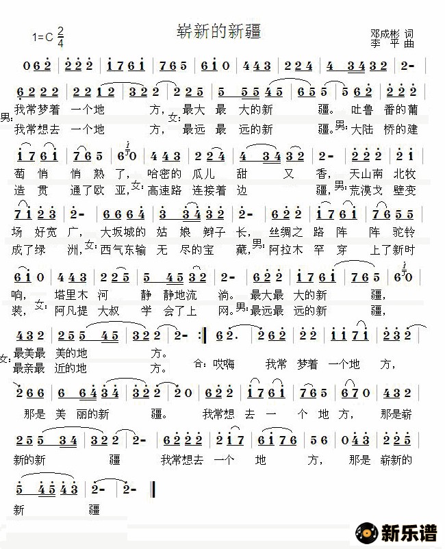 锡贵/画桥演唱的崭新的新疆歌词,崭新的新疆简谱.