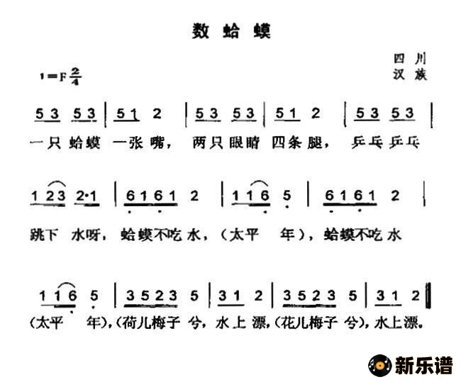 演唱的数蛤蟆(四川民歌)歌词,数蛤蟆(四川民歌)简谱.