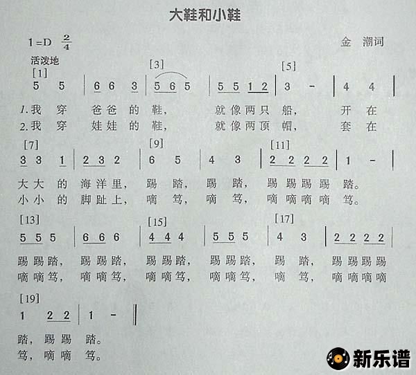 演唱的大鞋和小鞋歌词,大鞋和小鞋简谱.